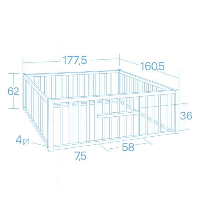 - 開閉式出入口1ヵ所 コーナー固定金具2、アジャスター付き
