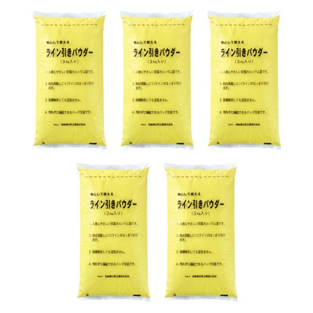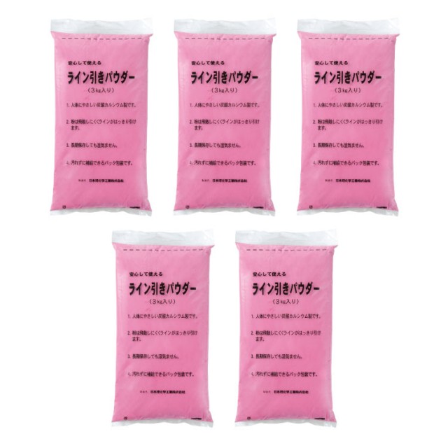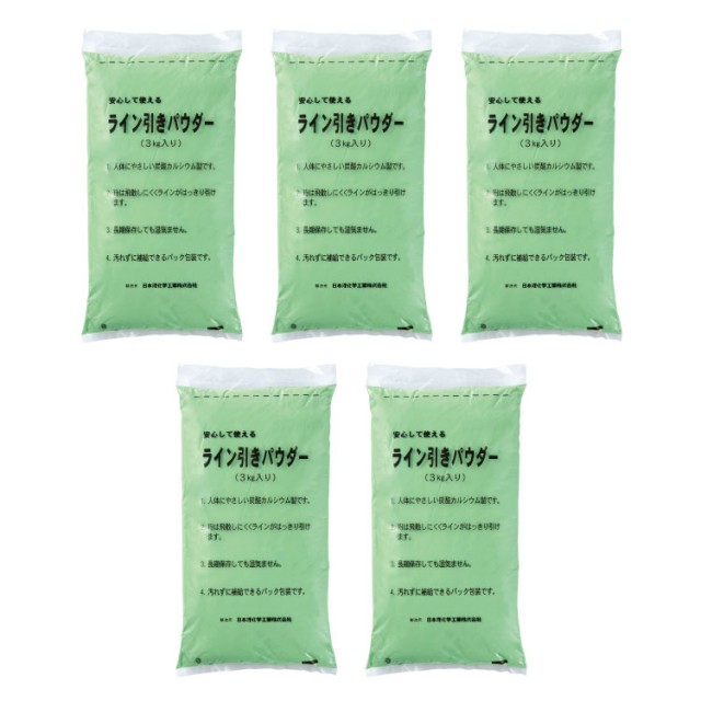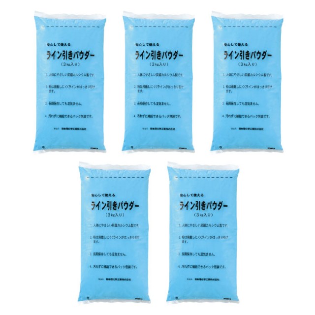 無公害(炭酸カルシウム)で便利なビニール袋(3kg)入り。長期間保存が出来、取扱いが簡単、グランドのライン引きに。