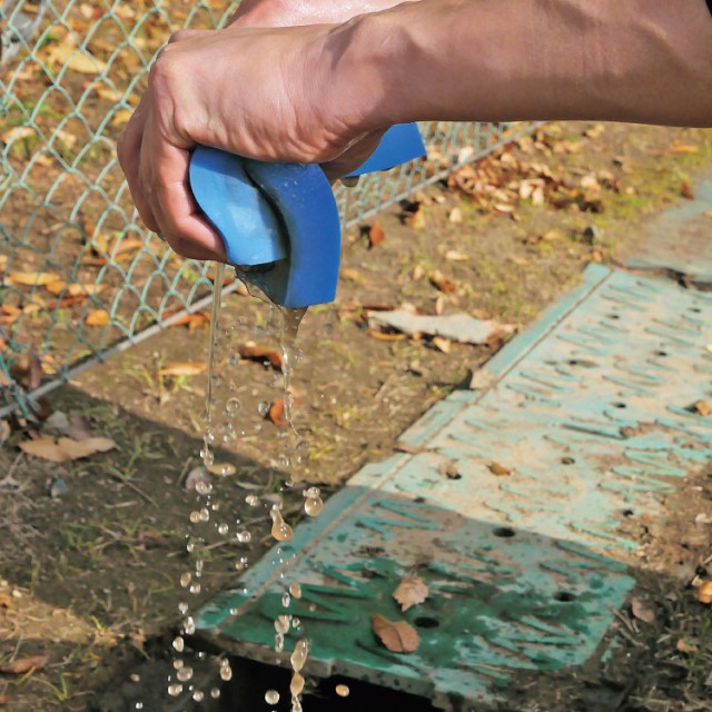 水たまりに置くだけで約1Lまで一気に水を吸い上げます。