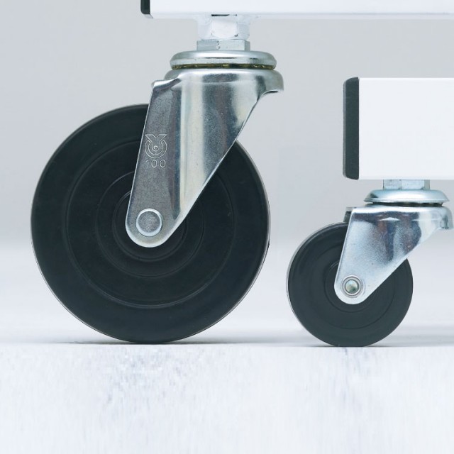 - 全高を抑え、移動が楽な10cmキャスター使用