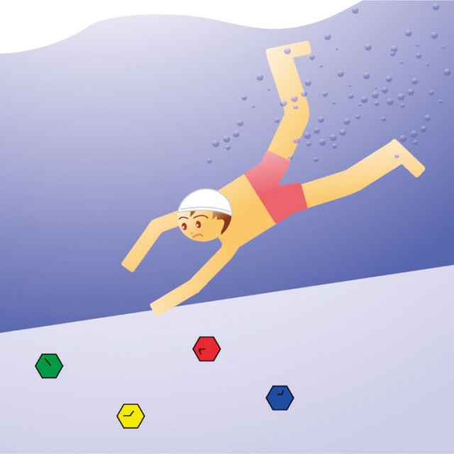 プールの底に沈めたボールを拾うことで、水に慣れ、水中動作の習得に役立ちます。