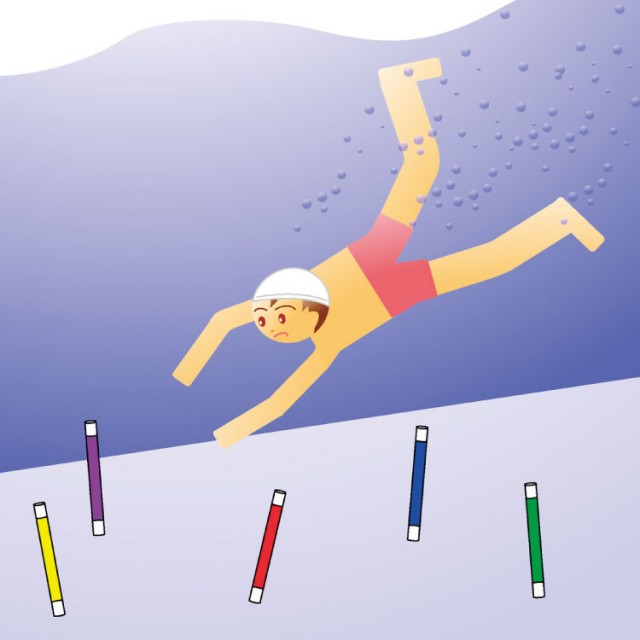 プールの底面をキズ付けずに楽しく遊べる水底直立スティック