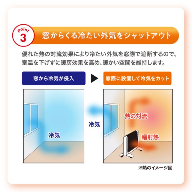 - また、対流性能の向上を追求した構造設計で、お部屋全体を効率よく暖めます。