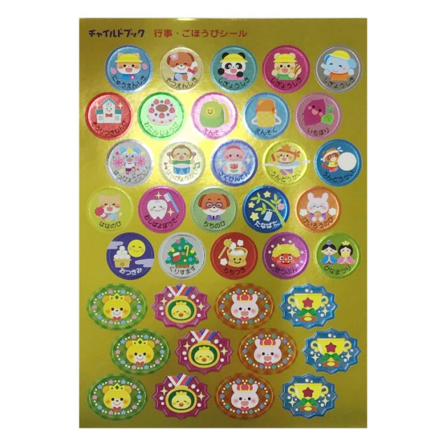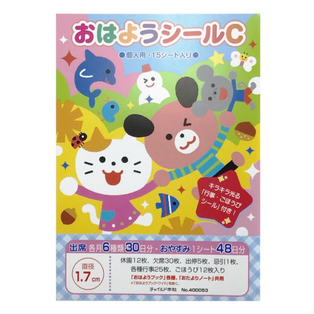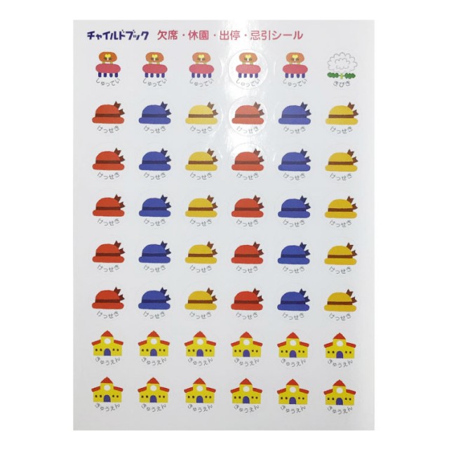 - ・各月6種類30日分、欠席・おやすみ・休園・ごほうび・行事シール付き (15シート入り)