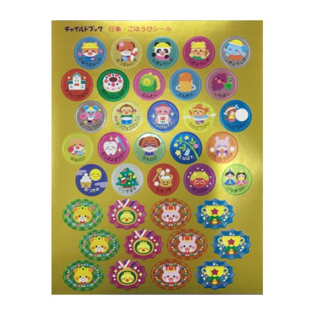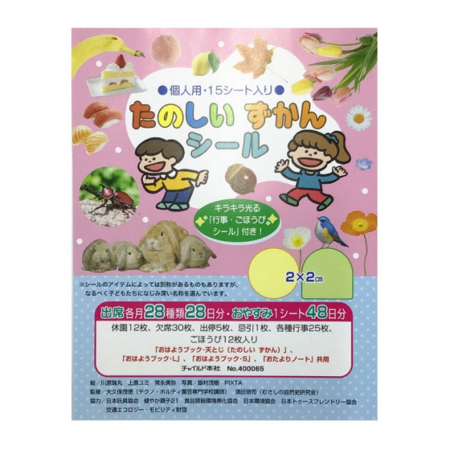 - ・各月28種類28日分、欠席・おやすみ・休園・ごほうび・行事シール付き(15シート入り)