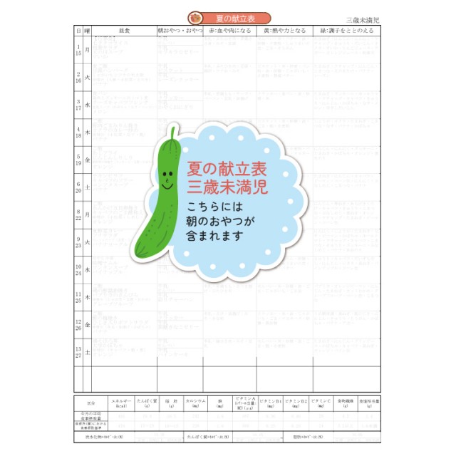 - 子どもたちの「もっと食べたい!」の声から生まれた、確かな「味」と「栄養価」の献立表です。