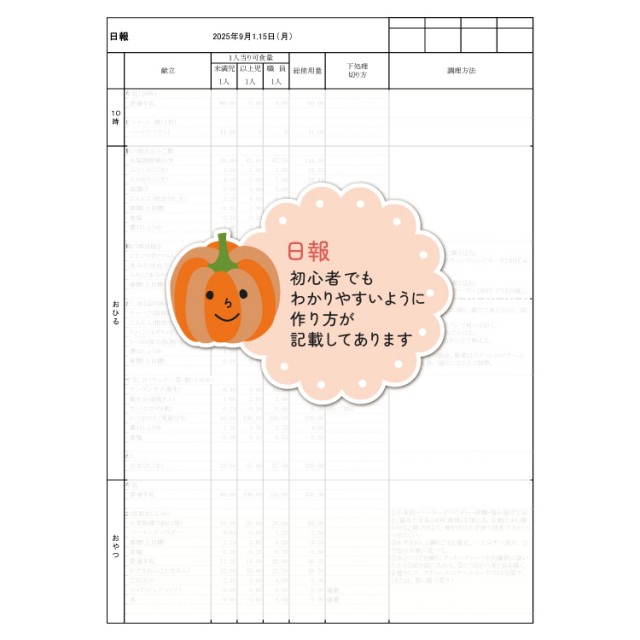 - ★野菜のおやつ「キャロットサンド」や贅沢な手作り「マドレーヌ」、お昼でもおやつでも使える「真珠蒸し」など、オリジナルレシピも盛りだくさん!単品レシピとしても活用でき、日々の献立作成に役立ちます!