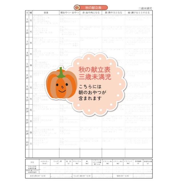 - 子どもたちの「もっと食べたい!」の声から生まれた、確かな「味」と「栄養価」の献立表です。