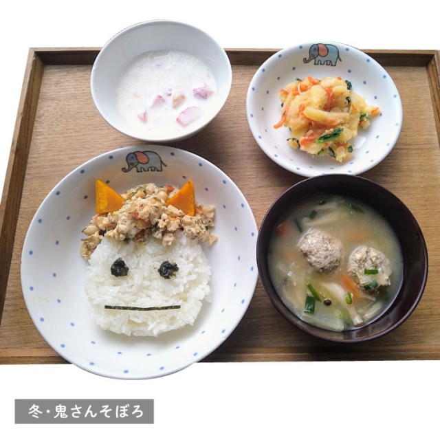 - □冬の行事にぴったりな「鬼さんそぼろごはん」「いわし団子味噌汁」などオリジナルレシピ収録
