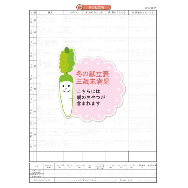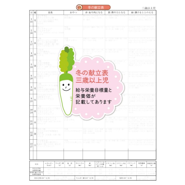 - 子どもたちの「もっと食べたい!」の声から生まれた、確かな「味」と「栄養価」の献立表です。