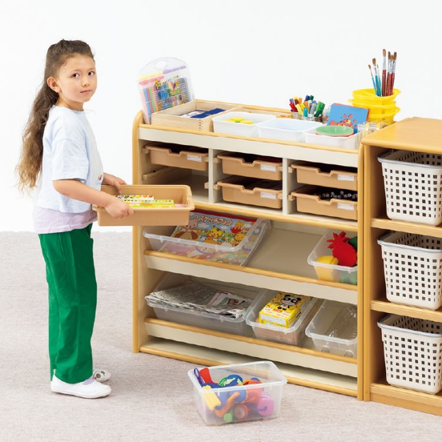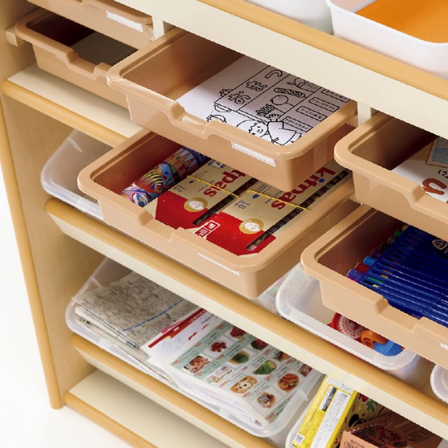 - 子どもが使いたいものを自由に選んで取り出せるので、製作コーナーはもちろん、自由遊びのお部屋の設置に最適です