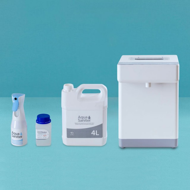 - 水道水と電解液だけで除菌水を作る「アクアサニターメーカー」