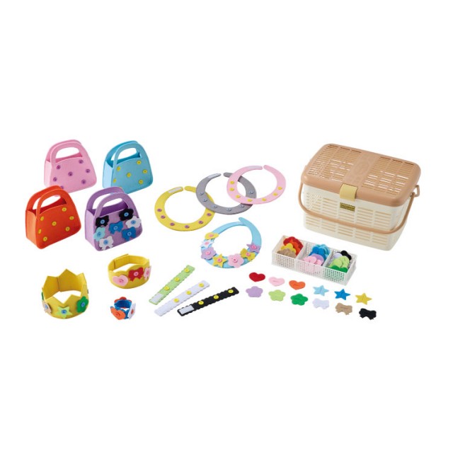 - ■セット内容/バッグ、ネックレス、ブレスレット各4、パーツ96、ティアラ、王冠、パーツ用ケース、収納ボックス1
