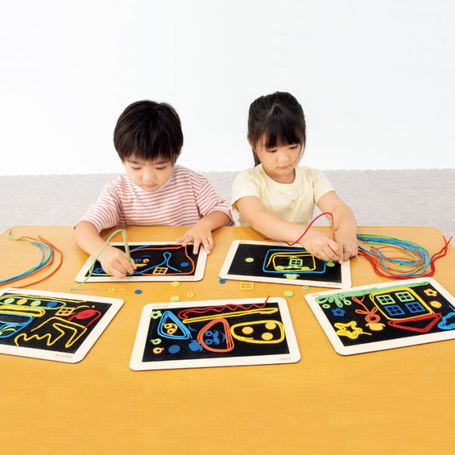 - ひもやフェルトパーツを貼り付けて遊ぶユニークなお絵かきセット