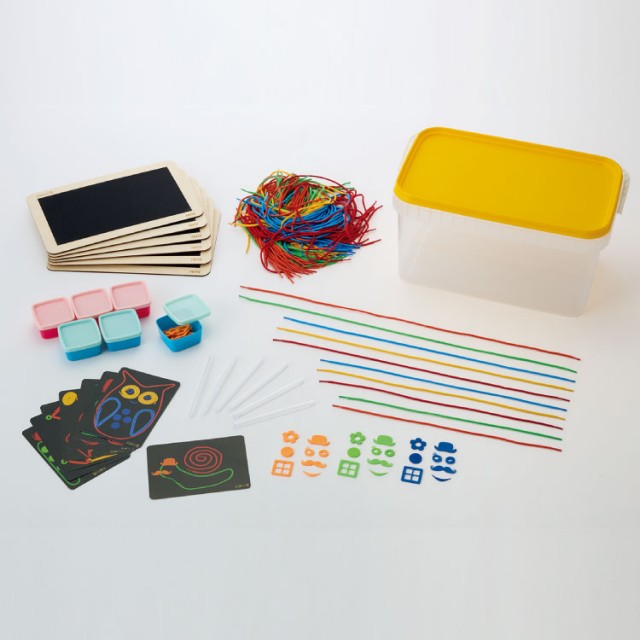 - ■セット内容/ボード、ペン、パーツケース各6、ひも120、作例カード8枚(16種)、収納ケース1