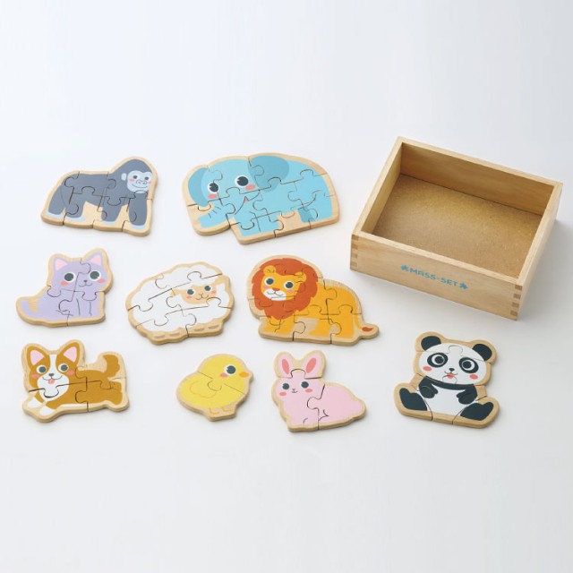- ■セット内容/ヒヨコ(2ピース)、ウサギ(3ピース)、ネコ(4ピース)、イヌ(4ピース)、パンダ(5ピース)、