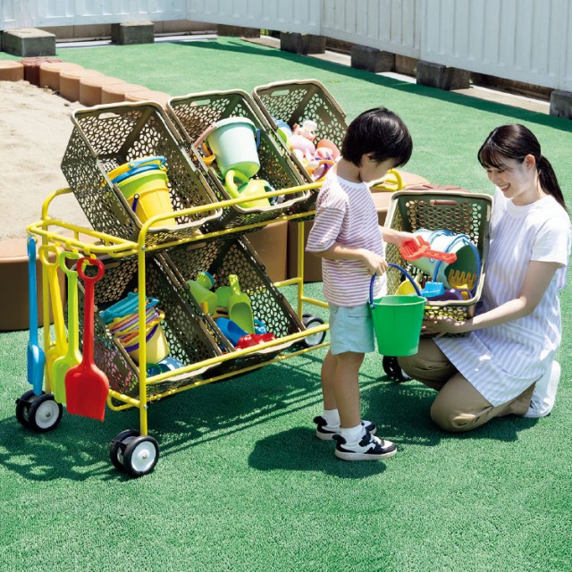 - 移動に便利な片側が自在キャスターの砂場ワゴン