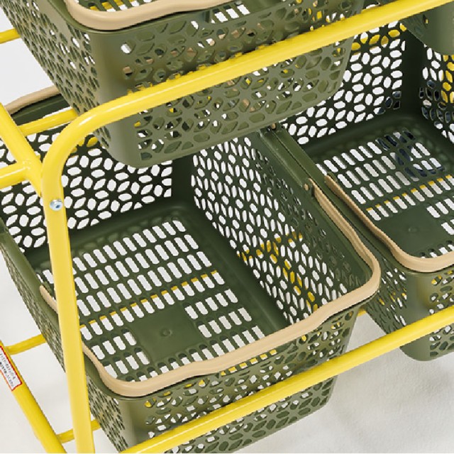 - ■材質/本体=スチール(粉体塗装) 収納カゴ=ポリプロピレン キャスター=EVA、ポリプロピレン
