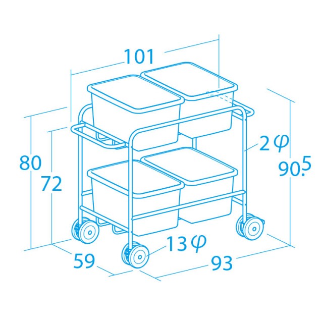- キャスター4個付き(内ストッパー付き2) ノーパンクタイヤ
