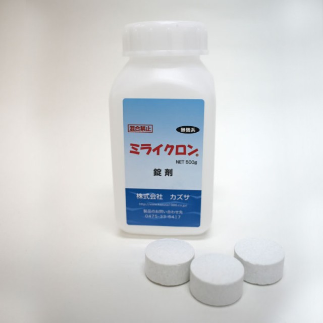 - ※少量(1㎏以下)を処分する場合は、プール等の大量の水にミライクロンを溶解させ塩素分を中和後、排水してください