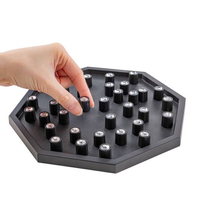 - ■寸法/ゲームボード=21.7×21.7×厚さ1.3㎝ コマ=直径1.5×高さ1.8㎝