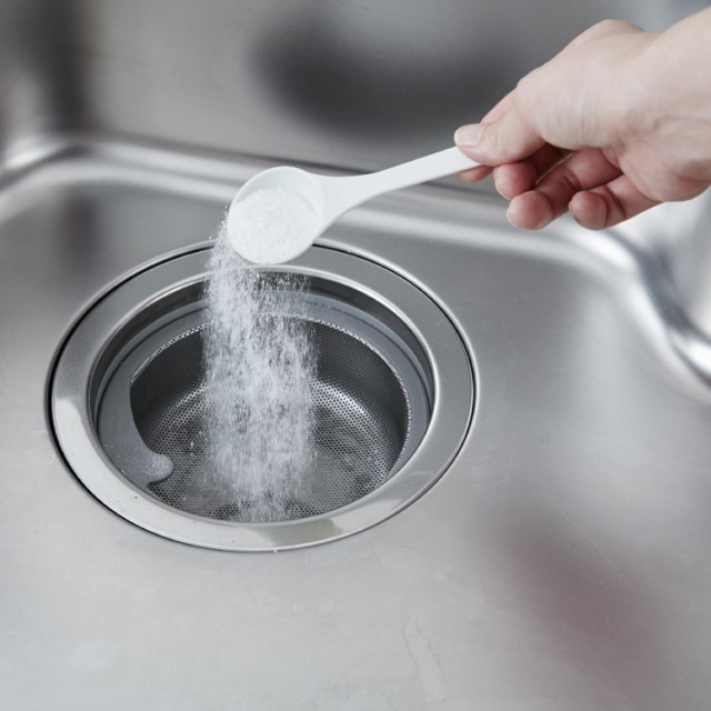ヌメリ・汚れが気になる排水口専用の洗浄剤。振りかけて、ぬるま湯をかけるだけで、モコモコ泡が汚れを包み込み、あとは水で洗い流すだけ。