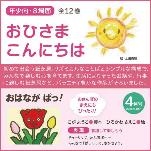 - 生活によりそったお話や、行事に親しむ紙芝居など、バラエティ豊かな作品がそろいました。
