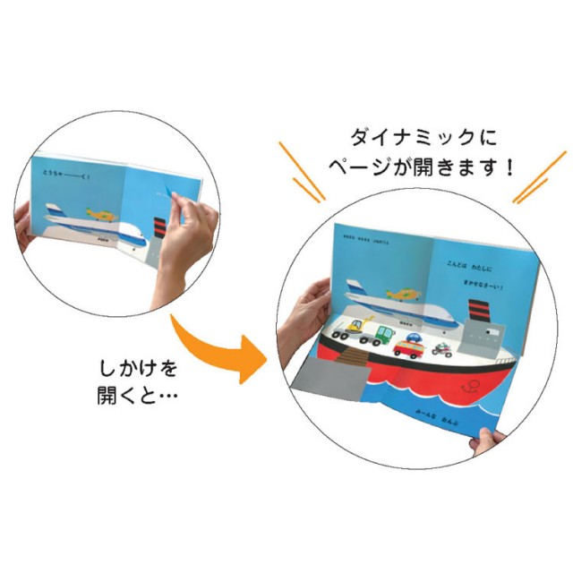 - つぎからつぎへといろんなのりものがやってきて、みーんなおんぶ! さいごにはダイナミックなしかけつき。