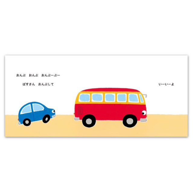 - おんぶーぶー。ちいさなくるまがバスさんに「おんぶして」。