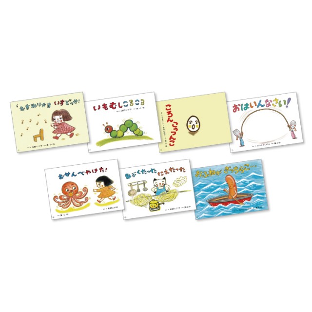 『おすわりやす いすどっせ!』『いもむし ころころ』『ころん こっつんこ』『おはいんなさい!』『おせんべ やけた!』『あぶくたった にえたった』『おふねが ぎっちらこ…』の全7巻セットです。