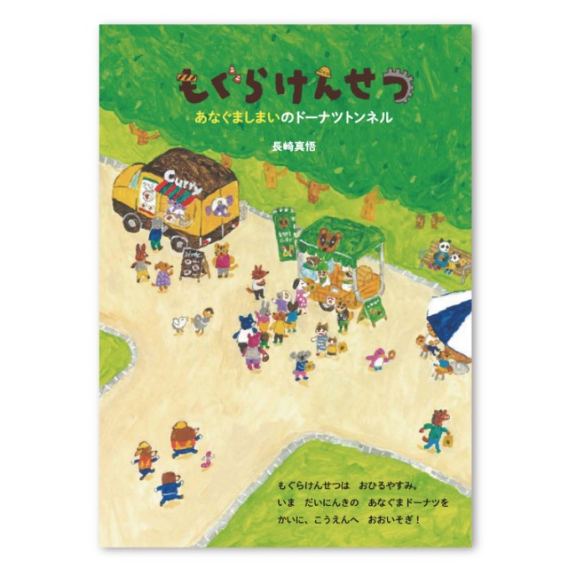 もぐらけんせつの町で人気のドーナツ屋さんは、あまりの人気で売り切れつづき。「おみせがもっとちかくなれば、たべてもらえるんやけどなあ」。「あなぐまドーナツ」は遠くの山の向こうから、はるばるドーナツを売りに来ているのです。