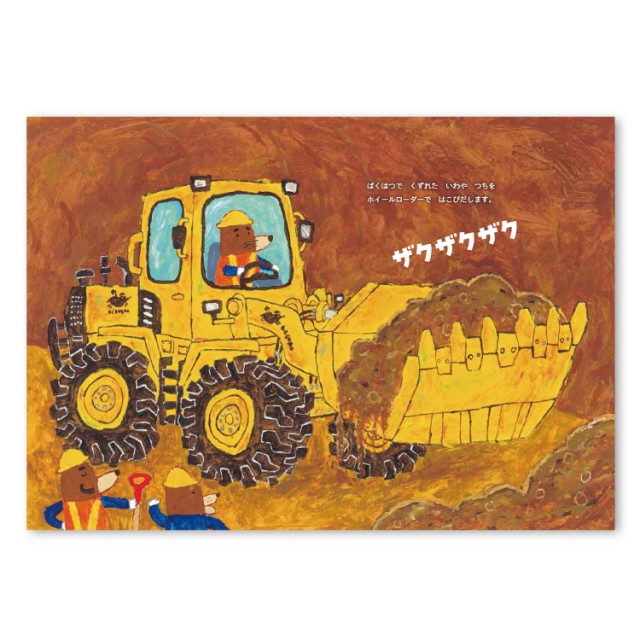 ドリルジャンボやジャイアントブレーカー、おなじみのホイールローダーやショベルカー、ダンプカーまで、かっこいい重機が大活躍。ゆかいなもぐらたちの仕事ぶりも見所の、たのしいおはなし絵本です。