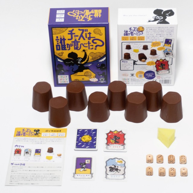 ■セット内容:チーズドロボーカード:1枚/ねぼすけカード:7枚/おちょうしものカード:1枚/ダイス:8個/チーズトークン:1個/ダイスカップ:8個