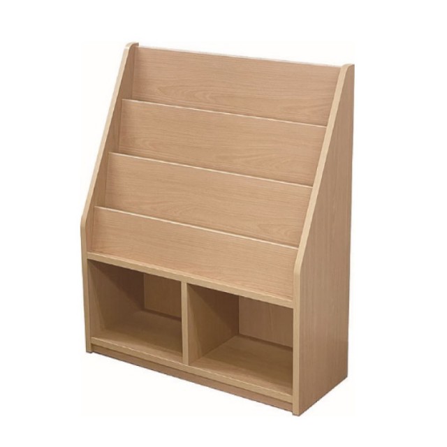 絵本が入る3段の展示台に、収納庫も付いた絵本スタンドです。
