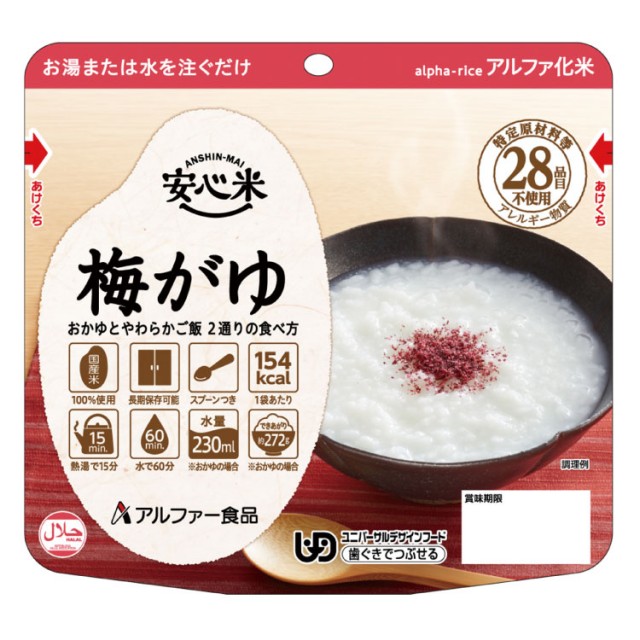 - ※「安心米」はアルファ化米(乾燥米飯)ですので、